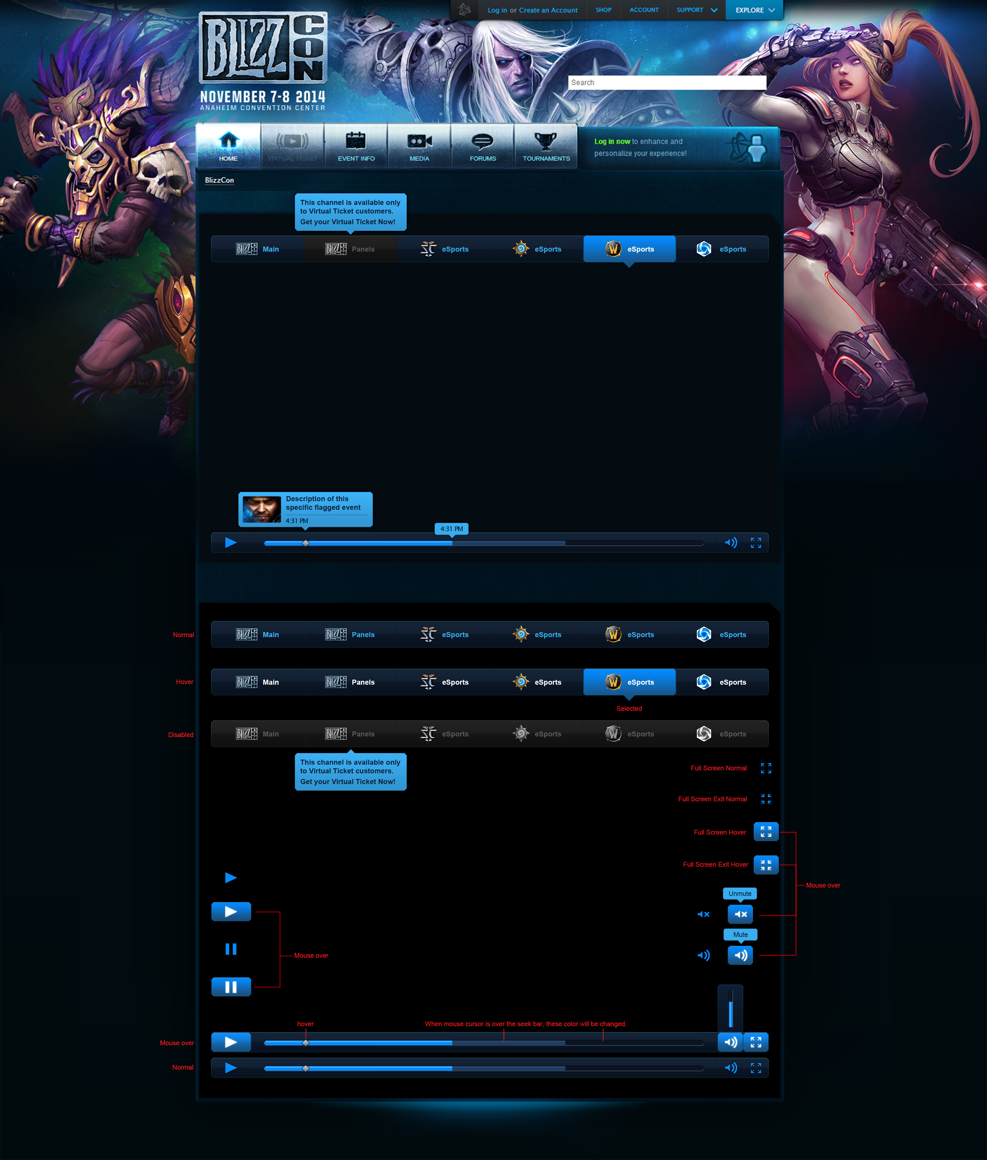Early in my design career, I was lucky to work with industry leaders who set very high standards of quality to create truly epic experiences. Through the Web and Mobile team, I contributed to every Blizzard IP, the Battle.net web app, and the BlizzCon video streaming platform. However, my favorite project during my time there was revamping the World of Warcraft website.