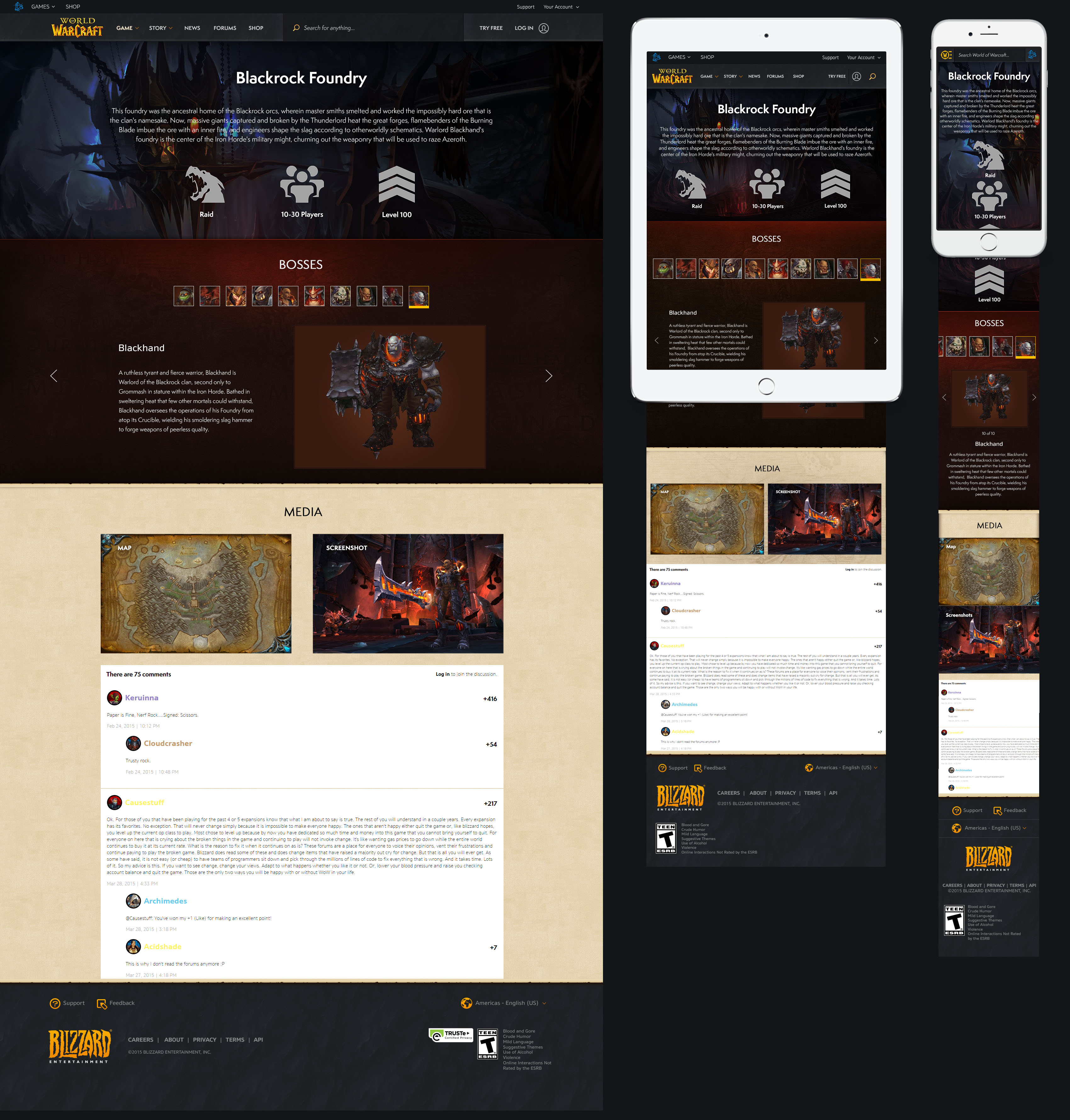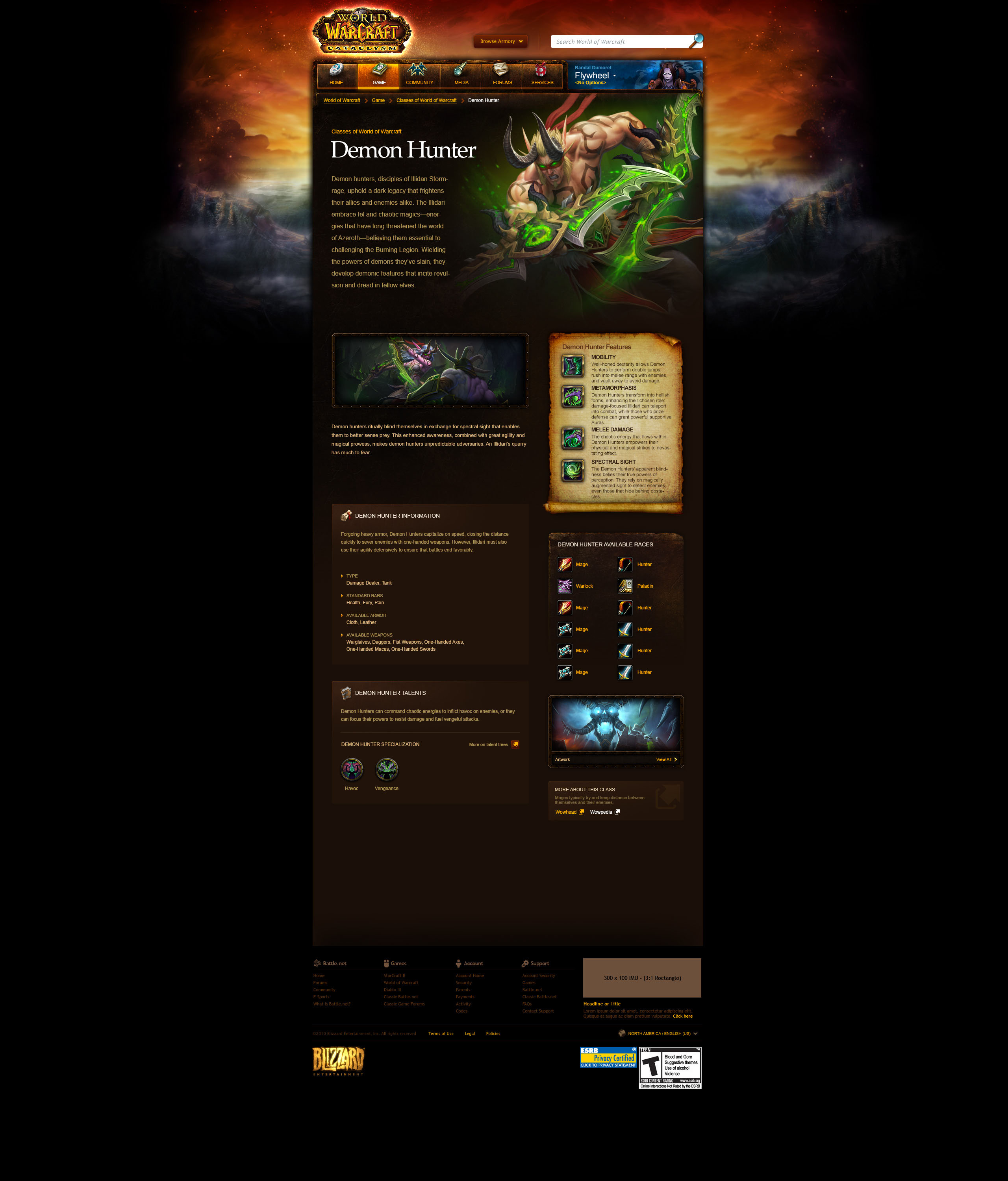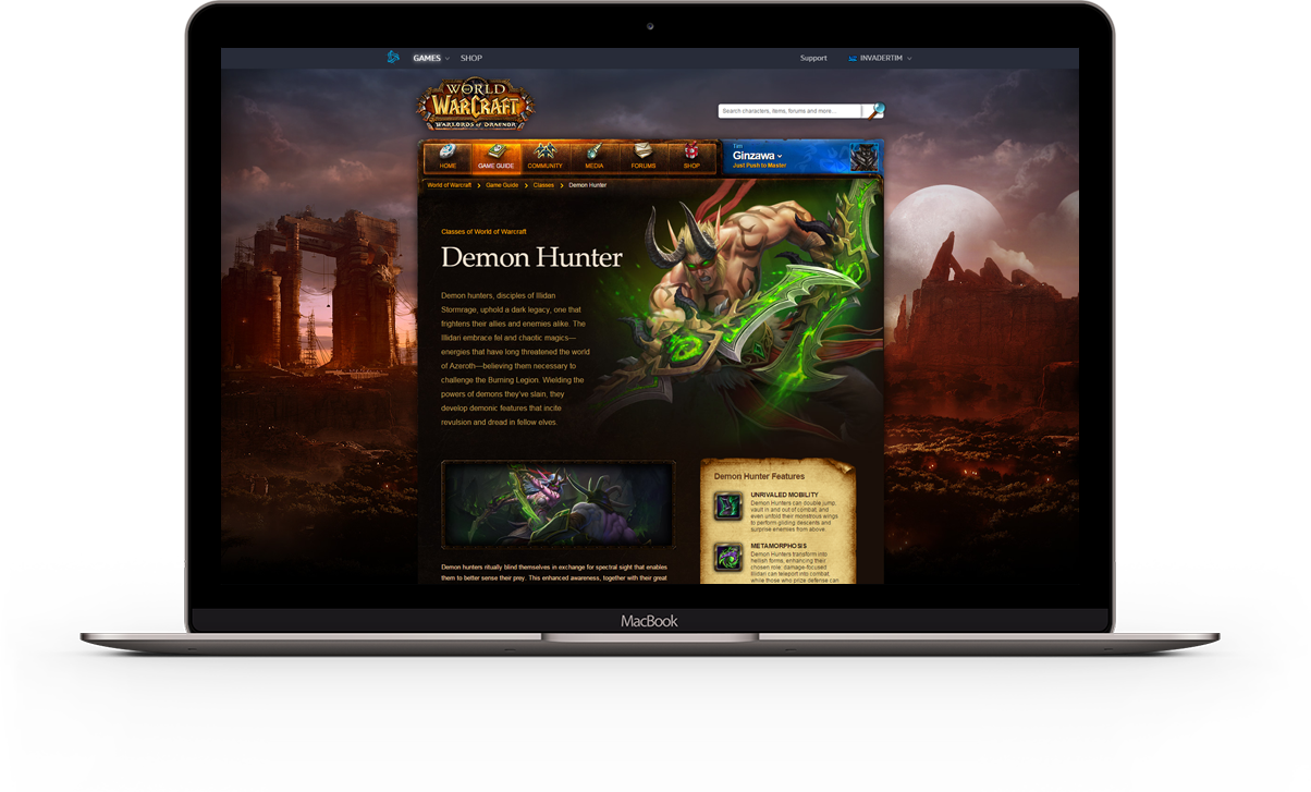 I made the last major edit to the original World of Warcraft website by adding a game guide page for the Demon Hunter class. A major downside of the old website was that it was not responsive for mobile devices. This was because most assets such as foreground and background images, buttons, and textures were baked in a single layer. This was the case with every Blizzard game and event webpage.