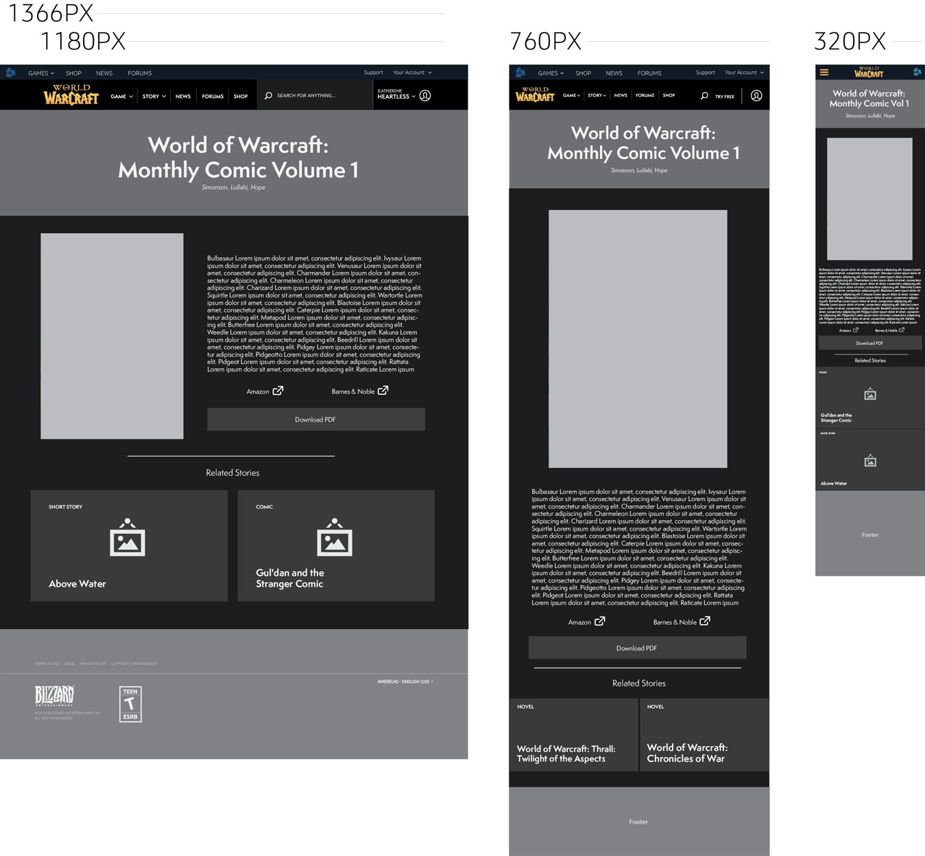 Coming up with a new layout was not a simple task because there was so much existing content. Even though we weren't able to maintain all the content from the legacy site, it also meant that we could explore supporting new kind content such as lore cinematics, webtoons, comics, and other community-driven content. Likewise, for other game and product websites, this meant that content would need to be revised or updated in some way to accomodate new, responsive layouts.